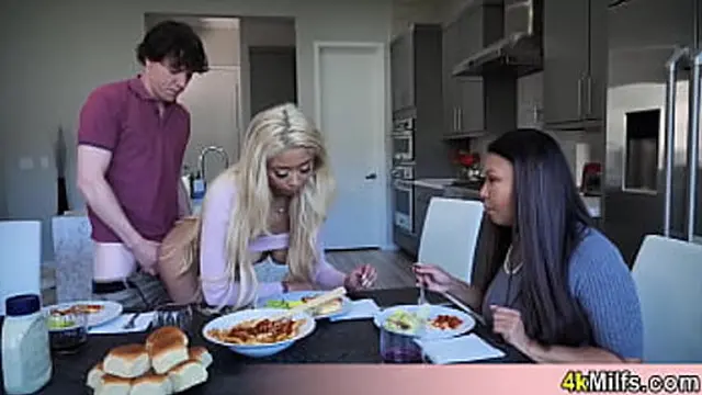 Beautiful ebony slut learning to free use with the help of my nympho sexmom