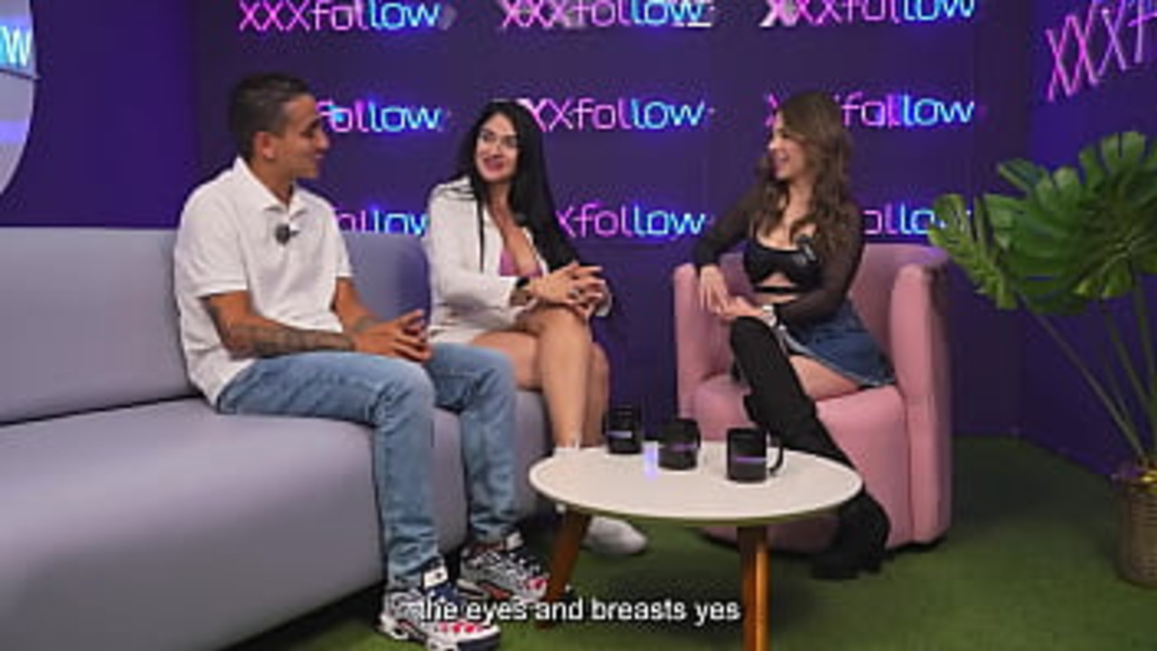 Stunning Colombian MILF Estella Osorio interviews a shy young man on the XXXfollow Sessions Podcast, but things get steamy as she gives him a wet blowjob with deep kissing and her big mouth. She then humps him in cowgirl, missionary, and doggystyle, showing off her big tits, pretty face, and big booty. He cums on her beautiful face and she licks his balls.