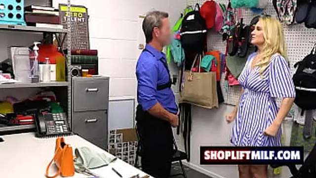 Busty milf Julia Robbie got caught stealing a battery from the store and takes security guard's cock in her pussy as a punishment
