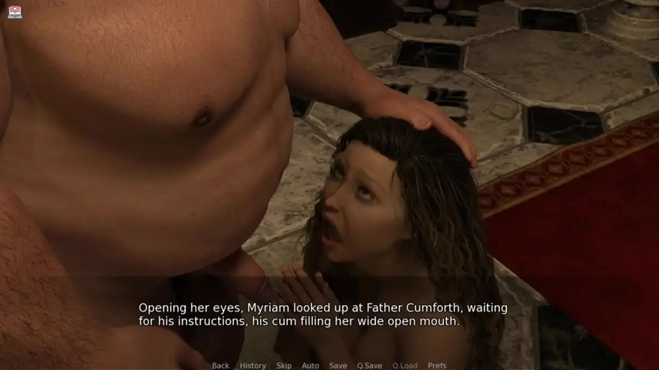In this 3D porn game, a horny priest with a massive dick lusts after a blonde MILF and teen. He makes the milf give him a deepthroat blowjob while the teen rides his big meat. Both women get nailed hard, moaning in pleasure until he cums all over their faces.