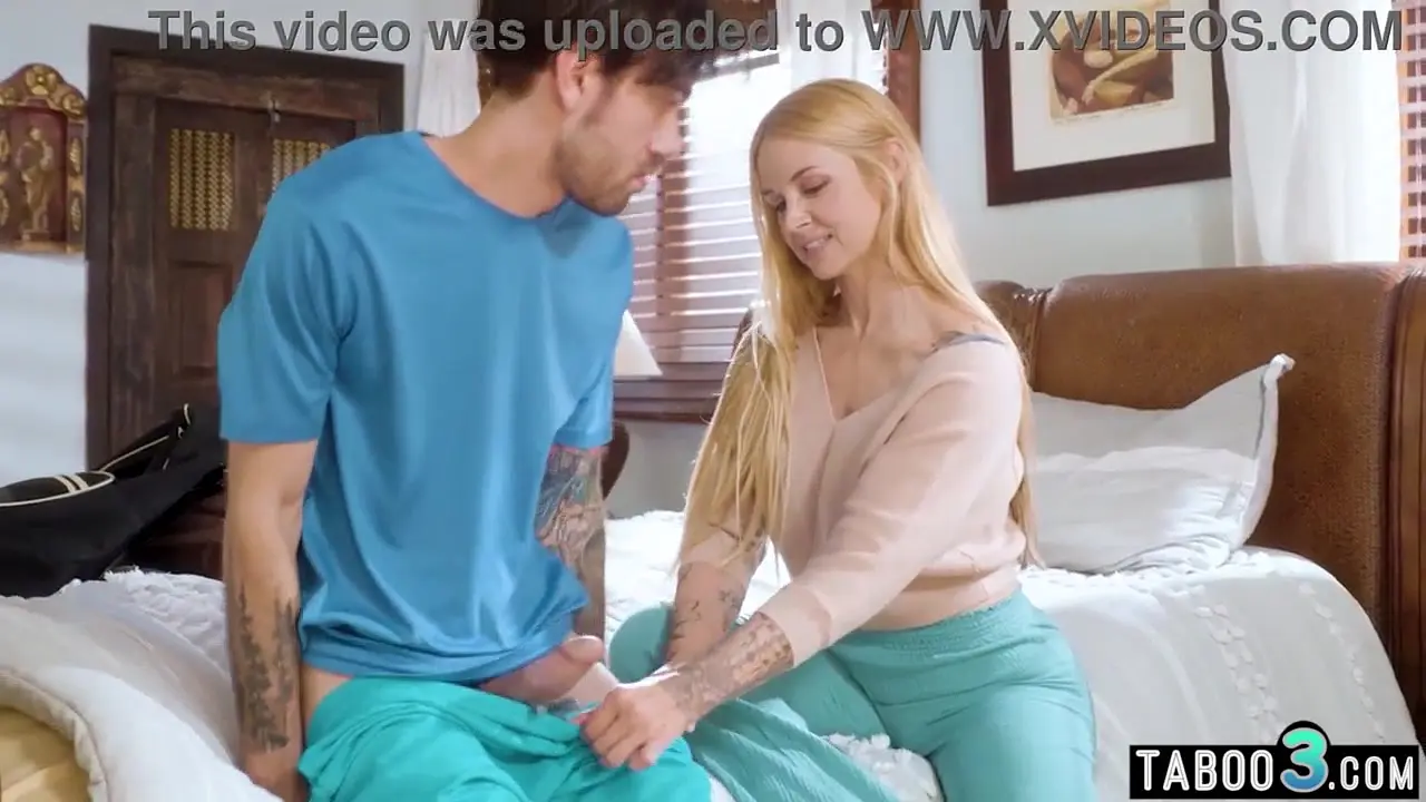 Sarah Vandella, the slutty busty blonde MILF stepmom, finds a box of condoms and receives a naughty idea. She seduces her stepson with her big tits and deepthroat blowjob. He fucks her hard while she gags on his big dick, then she cums all over his thick shaft.