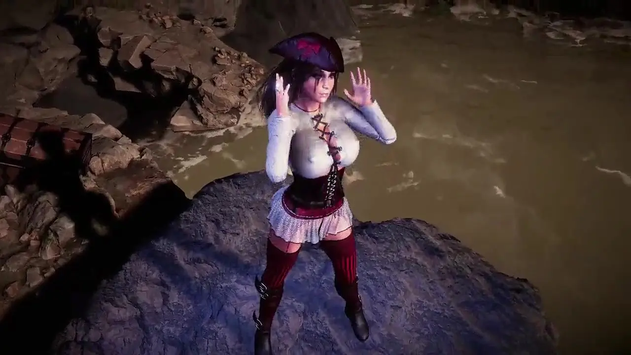 Lara Croft - Seductive Lara Croft dances in a miniskirt and corset on the beach